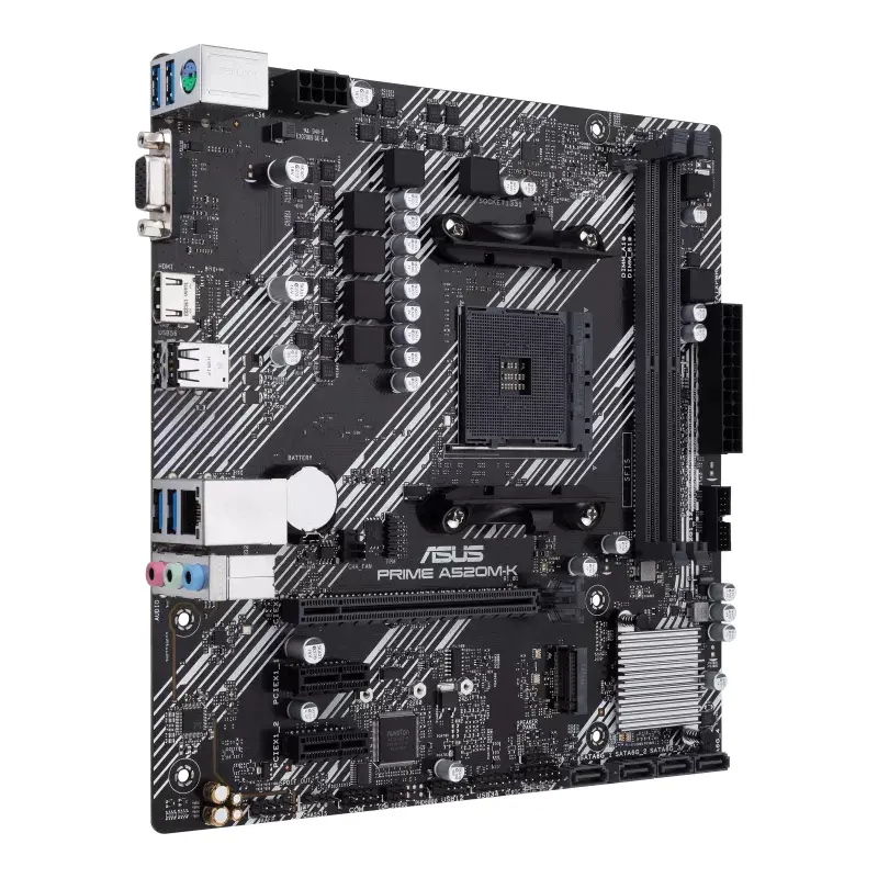 AMD AM4 socket (Ryzen 3000/5000 ready) DDR4 support, PCIe 3.0 x16 slot Legacy ports (VGA/DVI-D) + CSM support Essential connectivity: 1x M.2 slot (NVMe SATA) / 4x SATA 6Gbps / Gigabit Ethernet / USB 3.2 Gen 1